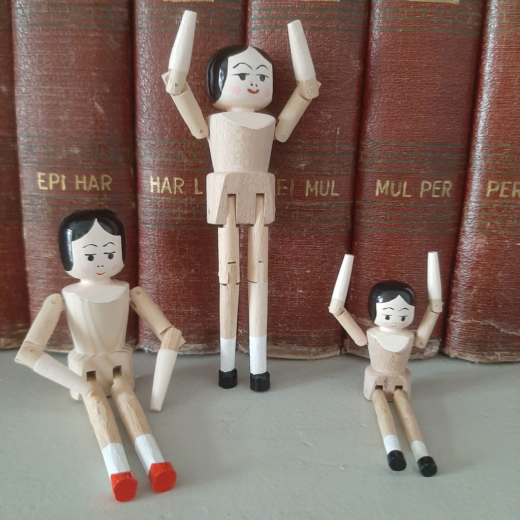 This photo shows the main range of the modern shaped Penny Wooden Dolls.